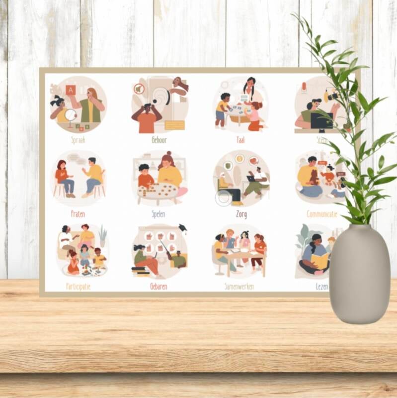 Is dit niet gewoon een gave en hippe logopedie poster? Alle elementen van logopedie zitten erin verstopt. En past bij ieder beetje hippe logopediepraktijk.